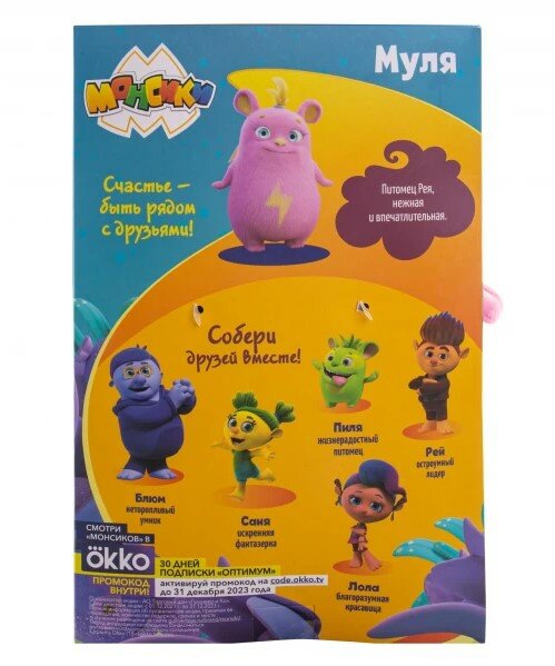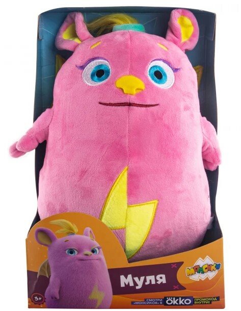 Муля, милый и храбрый питомец Рея из мультсериала Монсики, теперь и в виде мягкой игрушки. Несмотря на свой очаровательный внешний вид, Муля настоящая защитница, готовая всегда прийти на выручку своим друзьям или просто поиграть с ними. Мягкая игрушка Муля выполнена с высокой точностью и ребенок без труда в ней узнает персонажа своего любимого мультфильма.