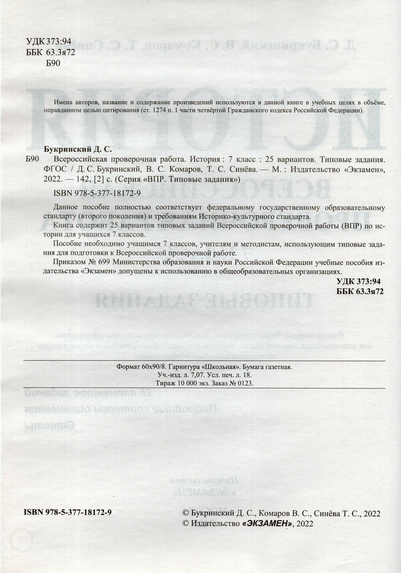 Всероссийская проверочная работа История 7 класс 25 вариантов Типовые задания ФГОС (Синева Татьяна Сергеевна; Букринский Даниил Сергеевич; Комаров Владимир Сергеевич); Экзамен, 2024