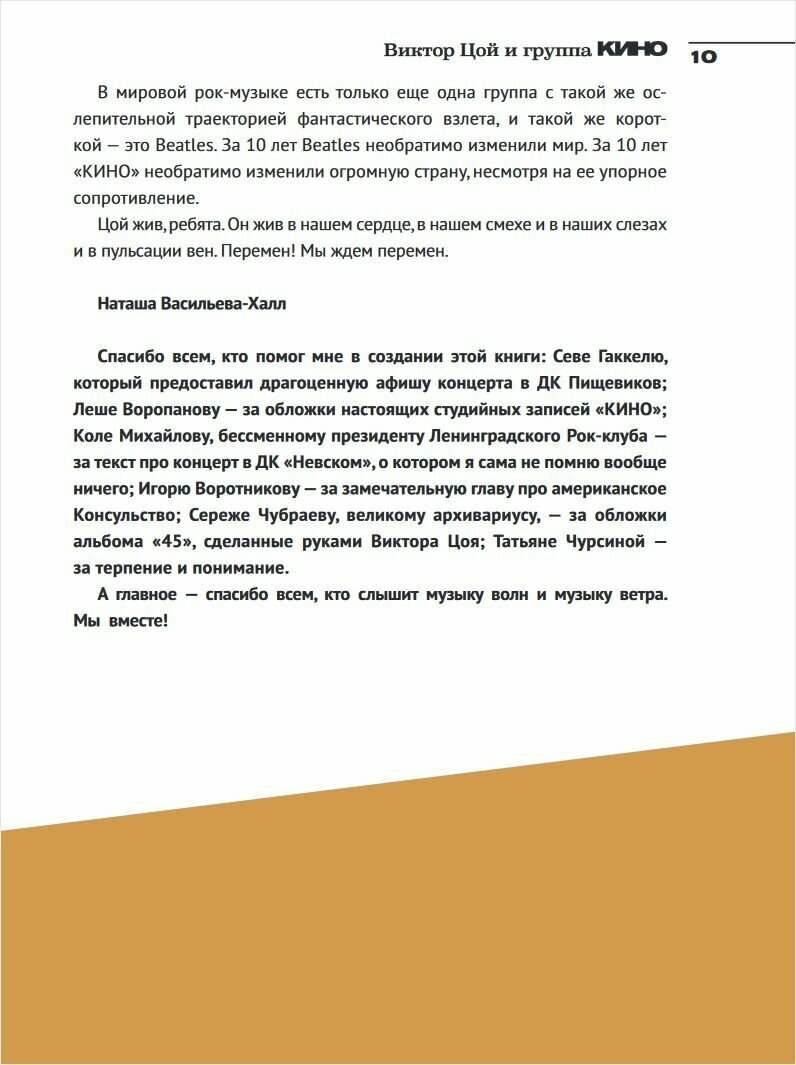 "Здесь, как и в предыдущих моих книгах, вы не найдете ни биографии, ни дискографии, ни официальной истории группы. Эта книга - мои личные впечатления о знакомстве с музыкантами. Это мои воспоминания, и они были бы абсолютно субъективными, если бы не фотографии, которые - по определению, от слова "объектив" - делают мое повествование объективным свидетельством эпохи, глазами очевидицы и участницы".