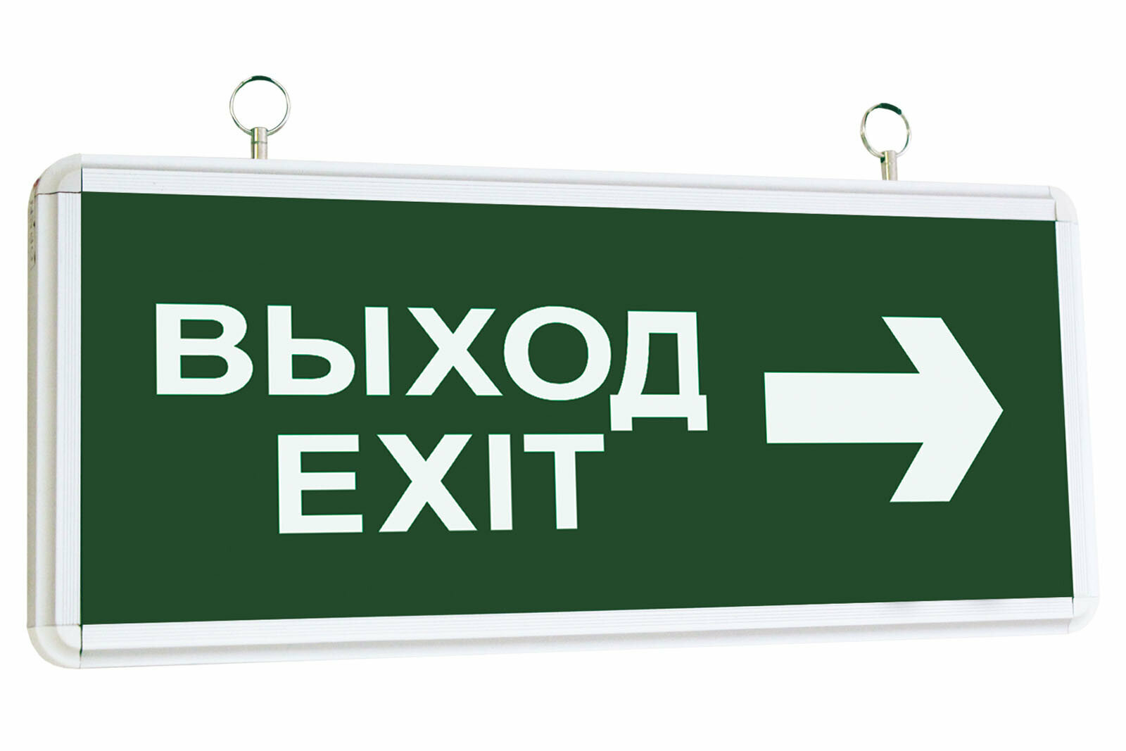 Новый светильник аварийный эвакуационный ССА2-01 постоянного действия с 6 светодиодами (LED), мощностью 2 Вт и световым потоком 80 лм , фирмы-производителя TDM, используется для указания мест выхода и направления эвакуации в общественных и производственных помещениях. В нормальном режиме работает от электрической сети с номинальным напряжением 220 В. В режиме аварийного освещения источником питания служит индивидуальный аккумулятор. Минимальная продолжительность аварийного освещения - 1,5 ч. Данный осветительный указатель оборудован двухсторонней надписью: "выход/EXIT" и со стрелкой. Корпус электроприбора выполнен из качественного алюминия, в сером цвете, а рассеиватель - из пластика прозрачного (светопроницаемого), что защищает источник света от воды, пыли и от разных механических повреждений. Изделие имеет размеры 363х145х23 мм и класс защиты - I. Степень защиты IP20 - показатель для использования светильника внутри помещений, лишенных влаги и большого количества пыли. Способ установки прибора - подвесной.