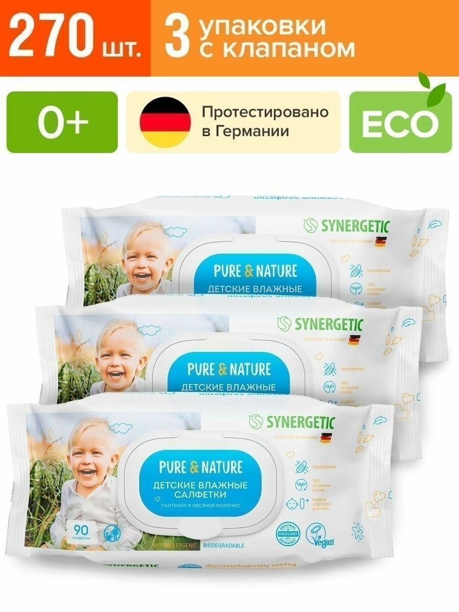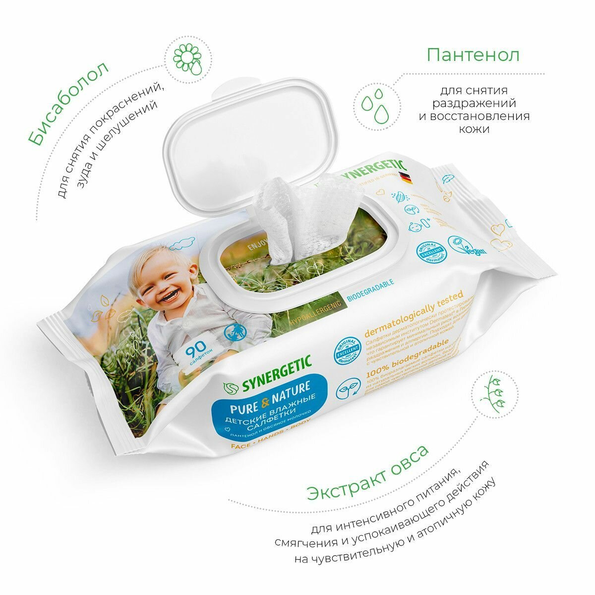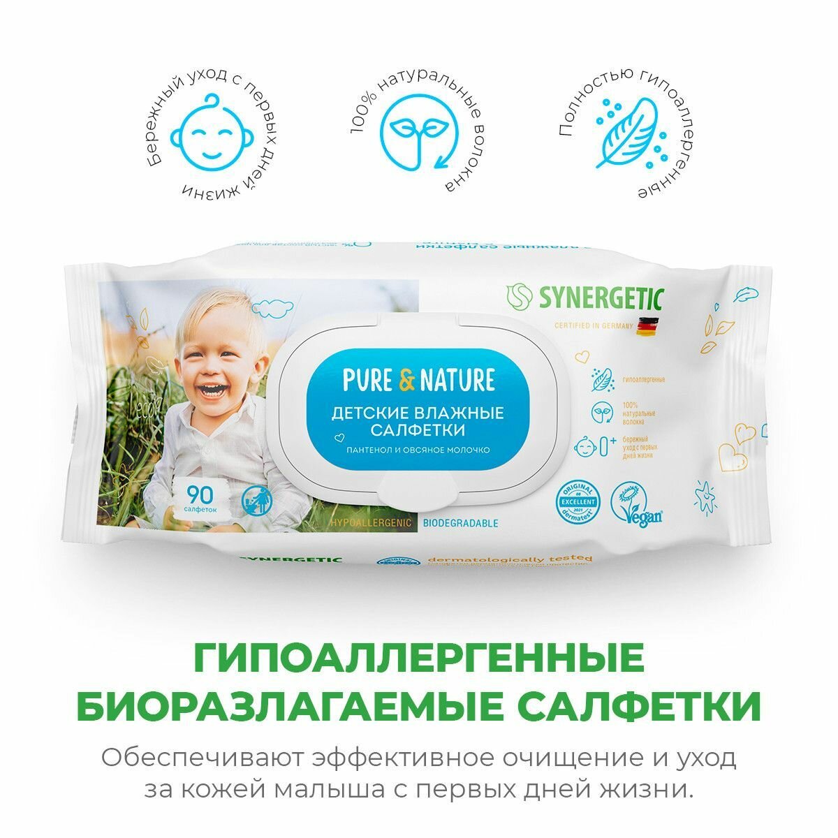 Салфетки влажные детские 0+ пантенол и овсяное молочко гипоаллергенные Pure&Nature Synergetic 90шт Авангард ООО (488589)