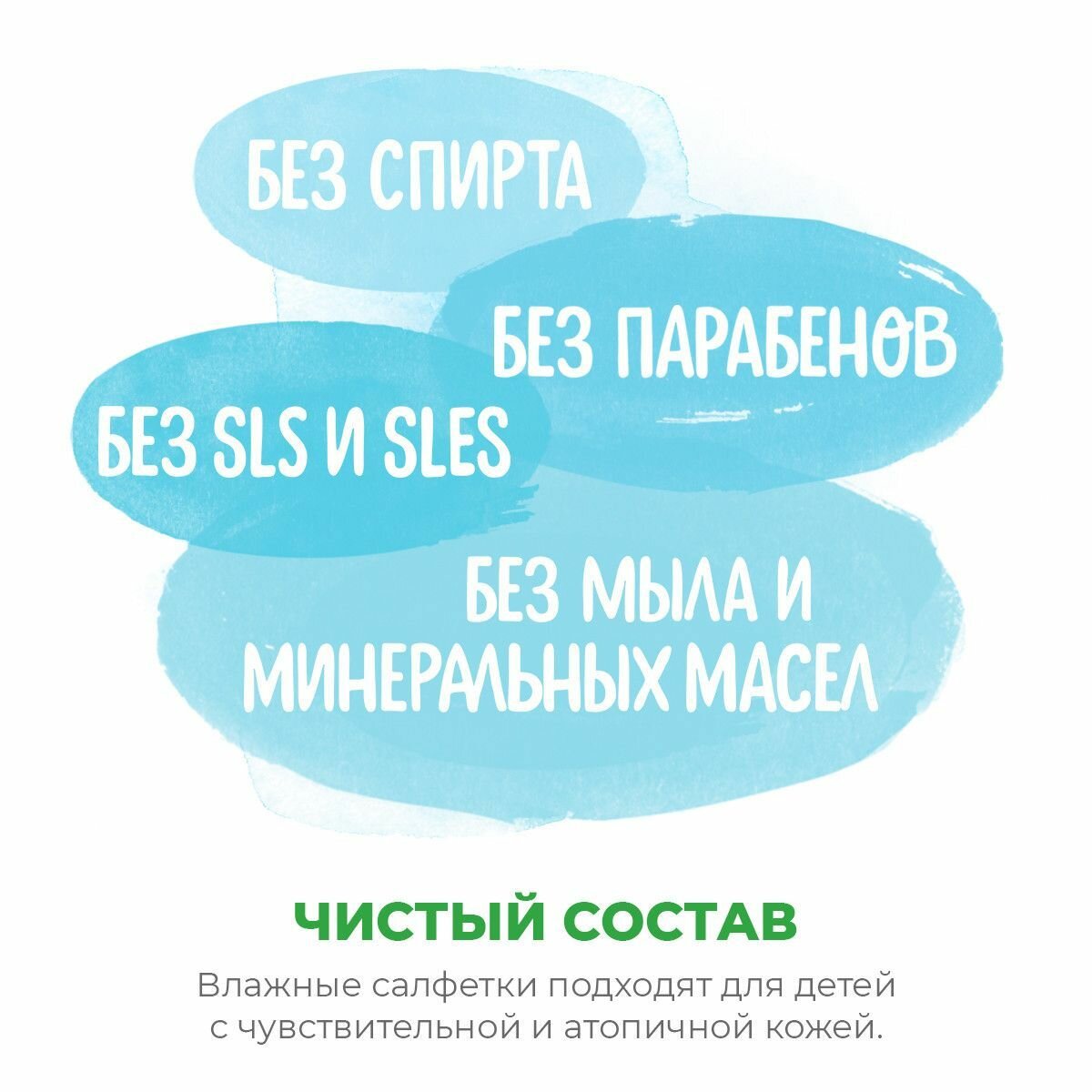 - 3 100% биоразлагаемые салфетки изготовлены из натуральных мягких волокон. Биоразлагаемый очищающий лосьон идеально подходит для ежедневной гигиены малыша.