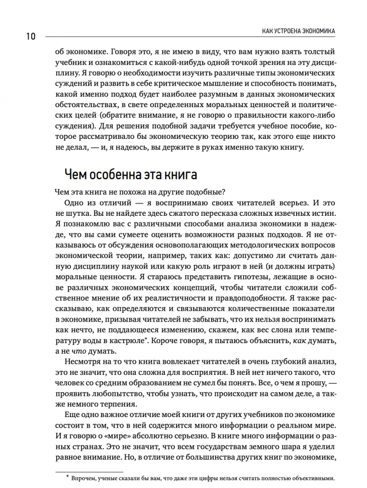 В отличие от многих экономистов, предлагающих один взгляд на свой предмет, Чанг рассматривает множество теорий — от классической до кейнсианской, показывая преимущества и недостатки каждой из них, и убедительно демонстрирует, что единого правильного подхода для объяснения функционирования экономики нет. Взамен одной "верной" теории автор предлагает набор инструментов, которые помогут вам лучше понять, как функционирует современная экономика в глобальном мире, где все связано между собой.