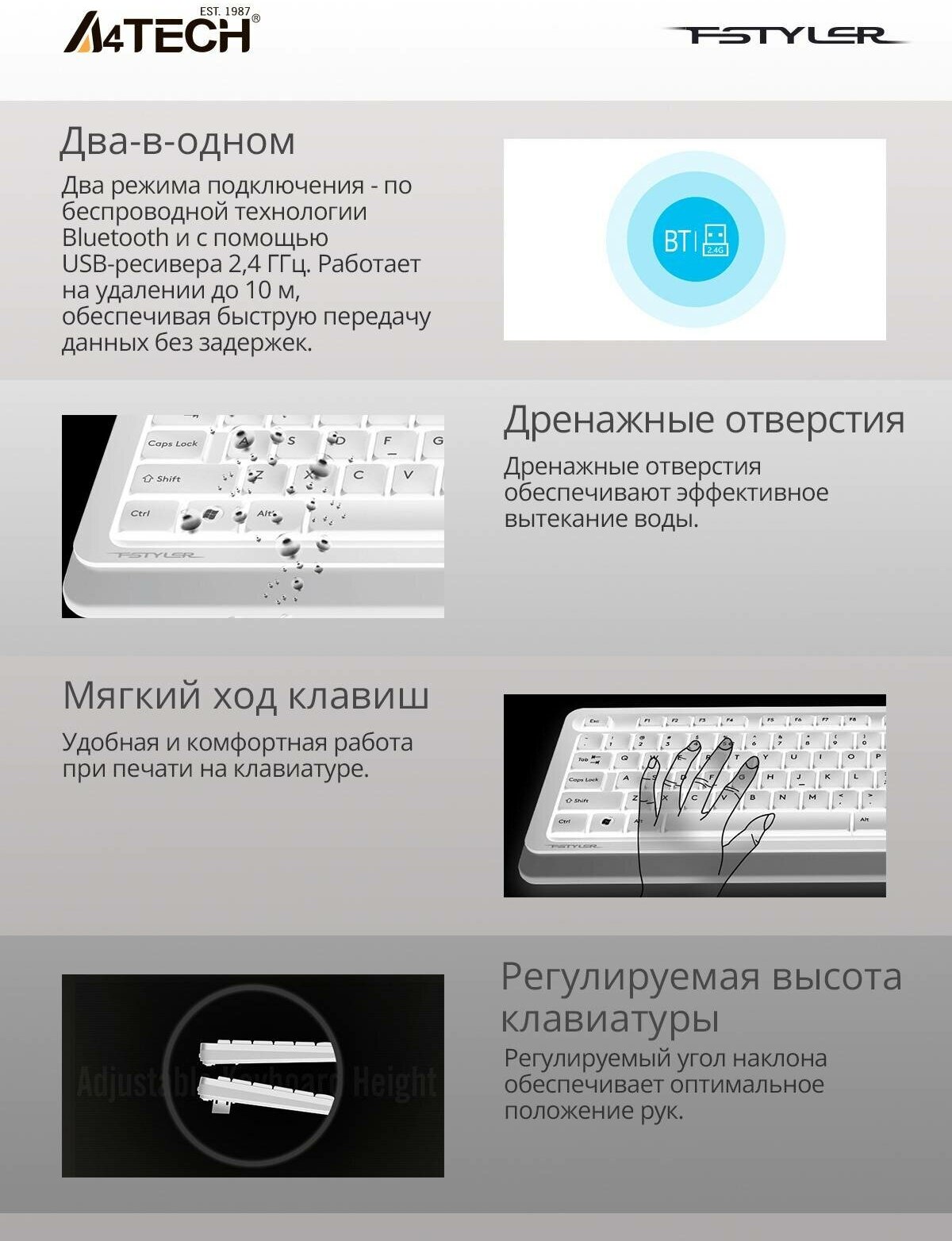 Клавиатура A4TECH Fstyler FBK11 USB Bluetooth/Радиоканал белый серый [fbk11 white]