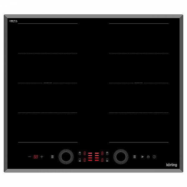 Индукционная варочная панель KORTING —эффектная модель в стиле хай-тек. Изделие из темной стеклокерамики сл скошенными краями, на которой ярко светится красная индикация каждой из четырех зон нагрева, смотрится очень эффектно. Стильный дизайн модели сочетается с ее высокой функциональностью. Для управления изделием используется слайдерная сенсорная панельTouch Control, для наибольшего удобства реализованы функции Booster для каждой зоны, Stop Go — для приостановки готовки, Quadro Flex — для объединения конфорок по одной из сторон для удлиненной посуды, а также режим подогрева.