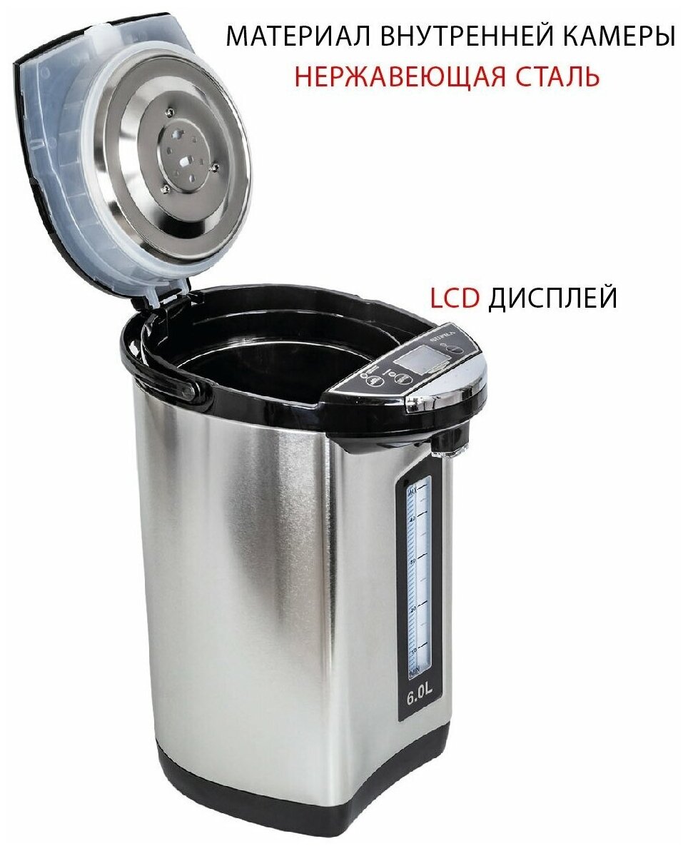 Термопот это очень удобно. Кипяток по требованию в режиме 24/7. Для большой семьи отличное решение. Достаточно большой объем, 6 литров. Добавляем воду один раз в два дня.