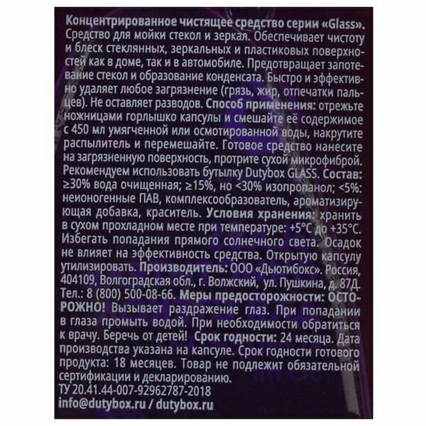 На сегодняшний день товар «Средство для мойки стёкол и зеркал Dutybox DB-1503 концентрат 50 мл Без бренда» можно купить с кешбеком в 1 магазине: Яндекс.Маркет