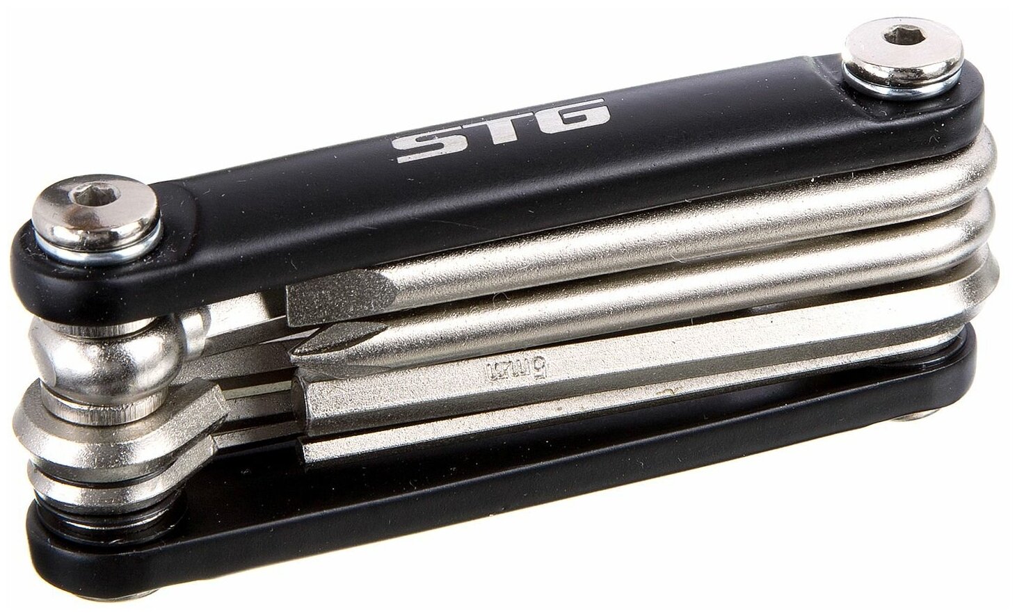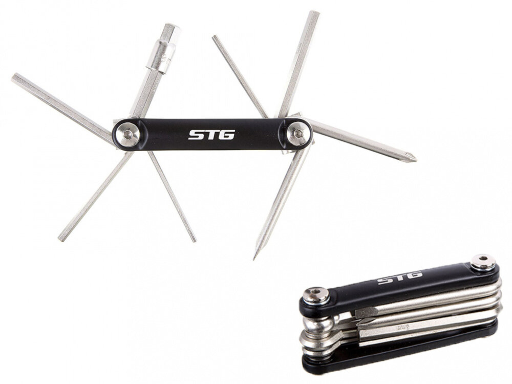 Набор STG YC-262 подойдет для проведения самостоятельного несложного ремонта велосипеда. С помощью такого удобного и легкого комплекта вы сможете устранить небольшие неполадки в работе байка. Для простой починки и быстрой регулировки руля, тросиков, переключателя скорости в нем предусмотрены шестигранники, а также крестовая и плоская отвертки. Этот минимальный комплект инструментов может быть использован для несложного ремонта и не займет много места в велосумке или кармане.