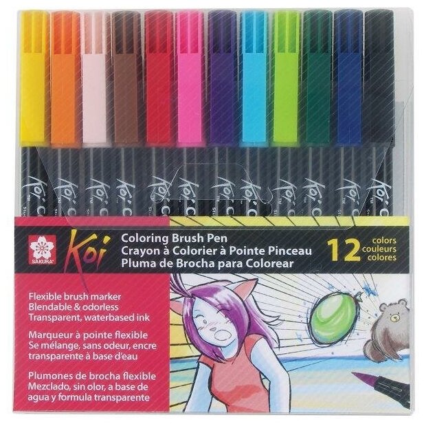 Набор маркеров акварельных Sakura "KOI" 12 шт стержень кисточка Набор акварельных маркеров Koi кисточка 12 цветов в пластиковой упаковке
