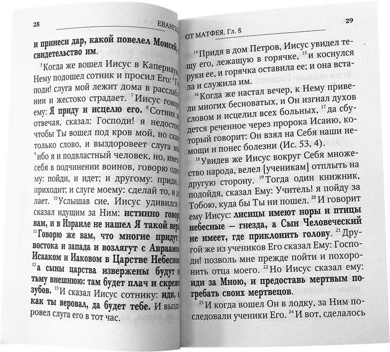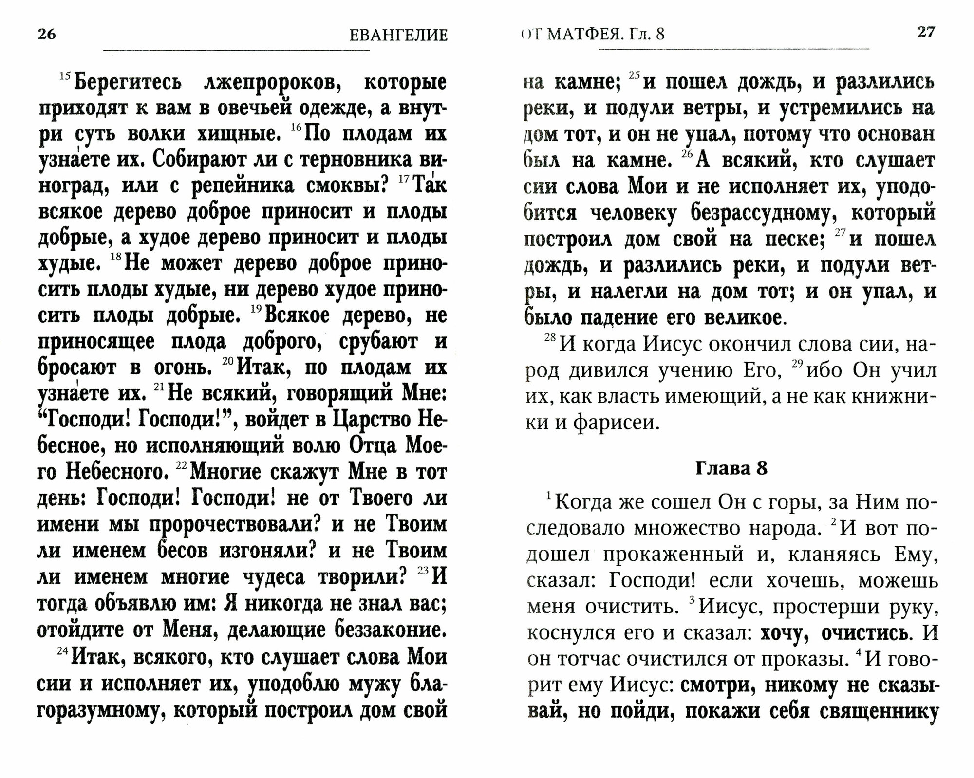 В этом издании Евангелия слова Господа и Бога нашего Иисуса Христа выделены жирным шрифтом для сугубого внимания к ним.
