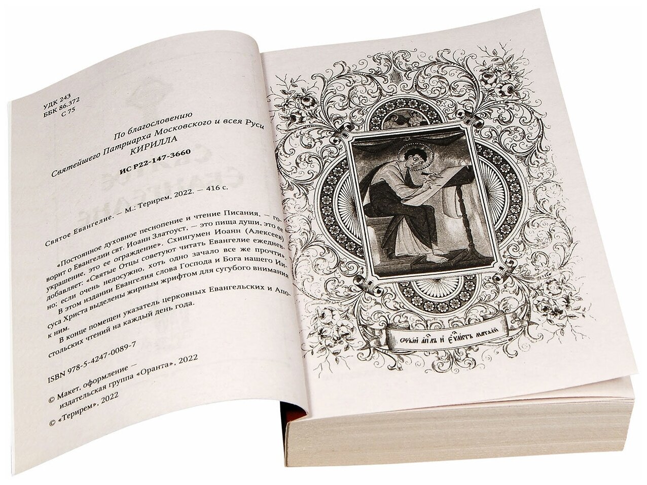 В конце помещен указатель церковных Евангельских и Апостольских чтений на каждый день года.
