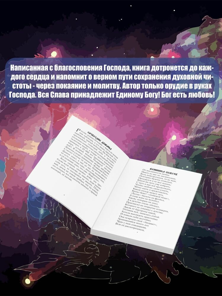 Написанная с благословения Господа, книга дотронется до каждого сердца и напомнит о верном пути сохранения духовной чистоты - через покаяние и молитву. Автор только орудие в руках Господа. Вся Слава принадлежит Единому Богу! Бог есть любовь!