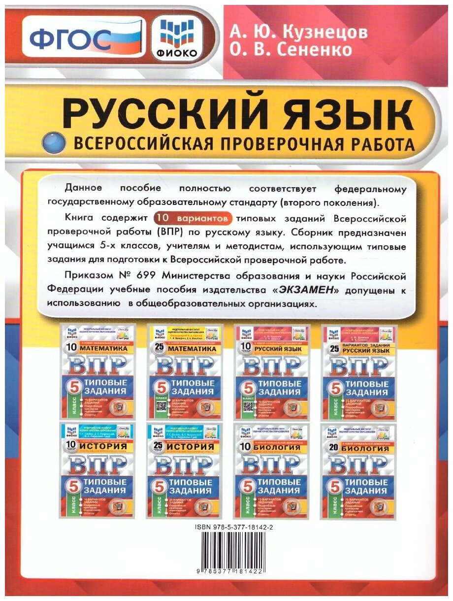 На сегодняшний день товар «Книга: Русский язык Всероссийская проверочная работа 5 класс 10 вариантов Типовые задания 10 вариантов заданий (Андрей Юрьевич Кузнецов); Экзамен, 2025» можно купить с кешбеком в 3 магазинах: Читай-город, book24, Буквоед