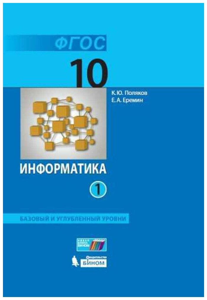 Учебник предназначен для изучения информатики на базовом и углублённом уровнях в 10 классах общеобразовательных организаций. Содержание учебника опирается на изученный в 7-9 классах курс информатики для основной школы.Рассматриваются теоретические основы информатики, аппаратное и программное обеспечение компьютера, компьютерные сети, алгоритмизация и программирование, информационная безопасность.Учебник входит в учебно-методический комплект, включающий также учебник для 11 класса, методическое пособие и задачник.Соответствует федеральному государственному образовательному стандарту среднего общего образования и примерной основной образовательной программе среднего общего образования.