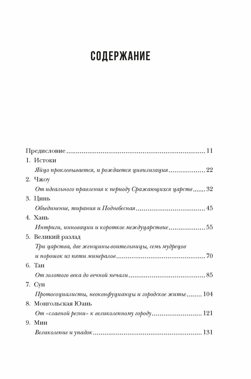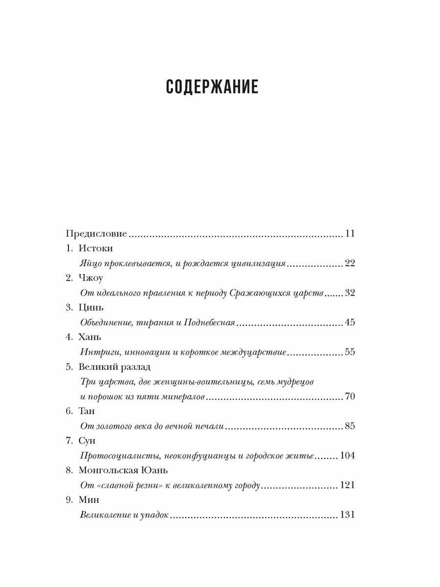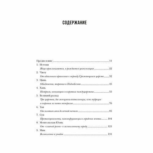 "Столкнувшись с необходимостью выбирать между ключевыми фигурами, экономическими и социальными процессами, военной историей, эстетическими и интеллектуальными течениями, я выбираю... всё. Я выделяю темы, события и личностей, которые, как мне кажется, проливают свет на суть своего времени, на развитие китайской цивилизации и государственности. Я не упоминаю всех многочисленных императоров, мятежников, мыслителей, художников, чудаков, изобретателей, политиков и поэтов. Я познакомлю вас с некоторыми из самых интересных и влиятельных людей и, насколько это возможно в такой небольшой книге, позволю им самим рассказать о себе. Я приведу цитаты из работ древних историков, современных политиков, поэтов и сатириков. Китай очень многообразен, и это сложное многообразие - часть его величия". (Линда Джейвин)