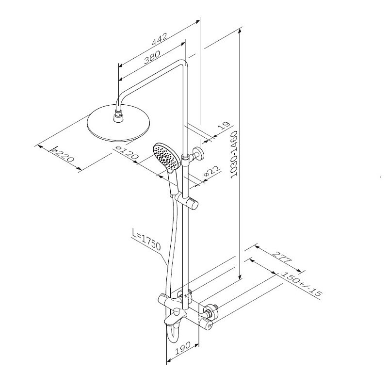 | Габариты верхнего душа | 220 |