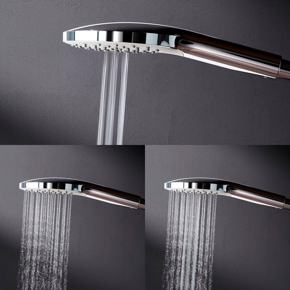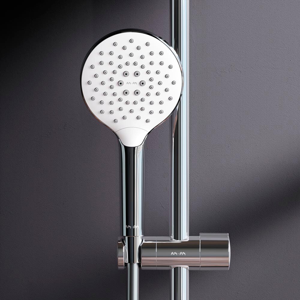 Премиальные размеры и продуманные детали: увеличенный диаметр душевых леек (верхний душ 220 мм и ручной душ 120 мм) позволит ощутить преимущества тропического душа, тогда как увеличенная длина шланга 1750 мм обеспечит свободу движений во время принятия душа. Телескопическая поворотная штанга регулируется по высоте в диапазоне от 1030 до 1460 мм, обеспечивая комфорт для людей любого роста, а шаровой шарнир в держателе верхнего душа позволяет регулировать угол его наклона.