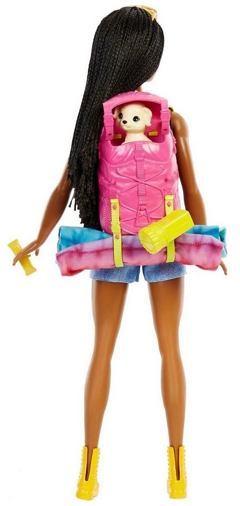 Отправляйтесь в захватывающее путешествие вместе с Барби! Тематический набор “Бруклин Кемпинг”, вдохновленный мультсериалом It Takes Two, включает в себя все необходимое для приключений на свежем воздухе. Положите в рюкзак фонарик, записную книжку, бутылку воды и другие предметы, которые могут пригодится в походе. Не забудьте взять с собой уютный спальный мешок, чтобы вздремнуть под звездами. Компанию Барби составит очаровательный щенок, который будет веселить ее в пути. Кукла не может стоять самостоятельно. Цвета и декор могут отличаться от изображений.