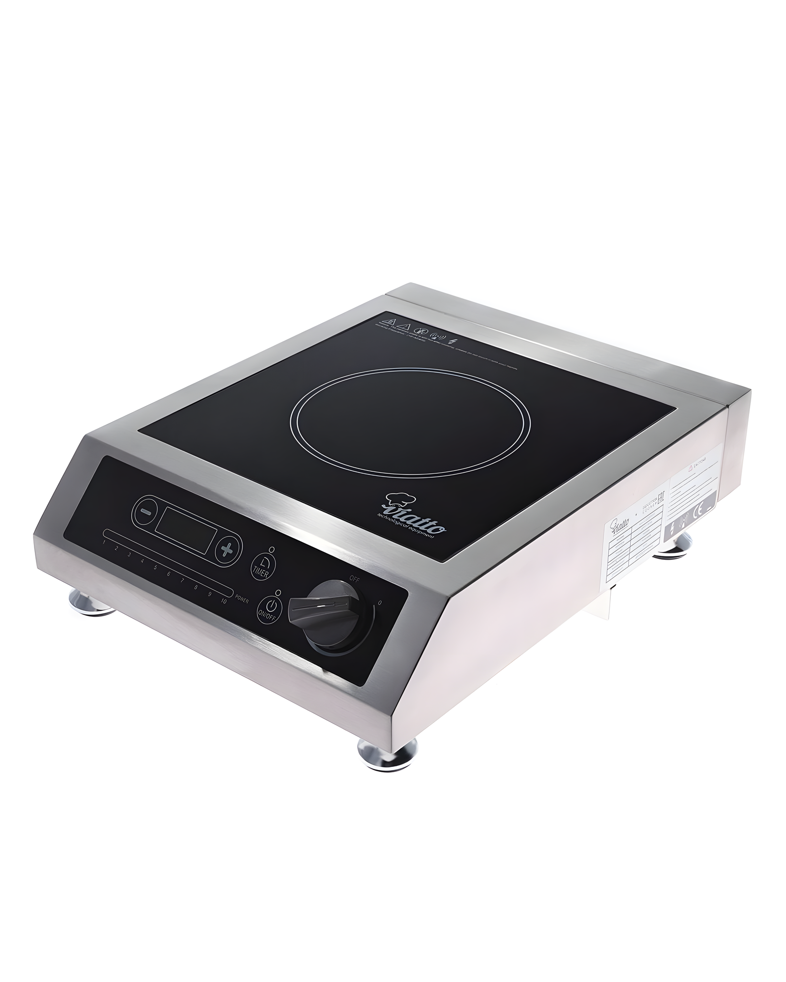 Настольная индукционная плита Viatto предназначена для приготовления и разогрева самых разнообразных блюд. Рабочая поверхность не нагревается при приготовлении, что минимизирует вероятность ожогов у рабочего персонала. Оснащена сенсорной панелью управления, вращающейся рукояткой, таймером и дисплеем. Корпус изготовлен из нержавеющей стали.