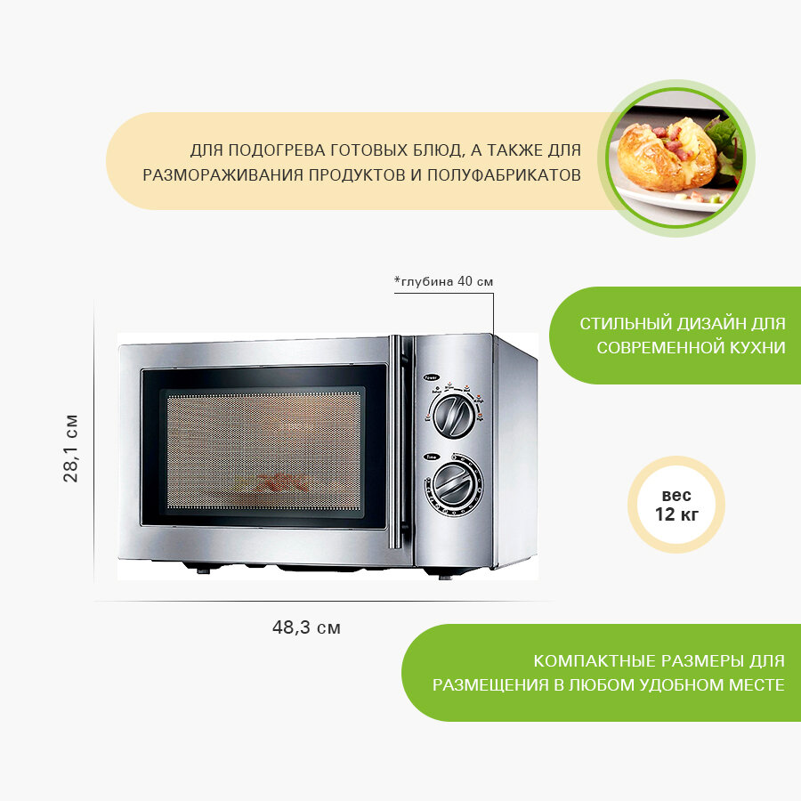 Микроволновая печь Viatto предназначена для разогрева и приготовления пищи. Модель оснащена таймером. Корпус, камера и ручка выполнены из нержавеющей стали. 6 уровней мощности.