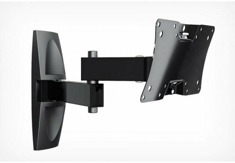 Holder – универсальный настенный кронштейн для плоскопанельных телевизоров с диагональю экрана от 19" до 32" и весом не более 30 кг. Относится к типу наклонно-поворотных. В его конструкции предусмотрены 3 шарнирных механизма, которые позволяют добиться идеального положения панели для просмотра программ и фильмов: для устранения неприятных бликов от солнца или яркого источника света экран можно поворачивать в разные стороны на 350° или наклонять вверх и вниз на +20° и -20° соответственно.