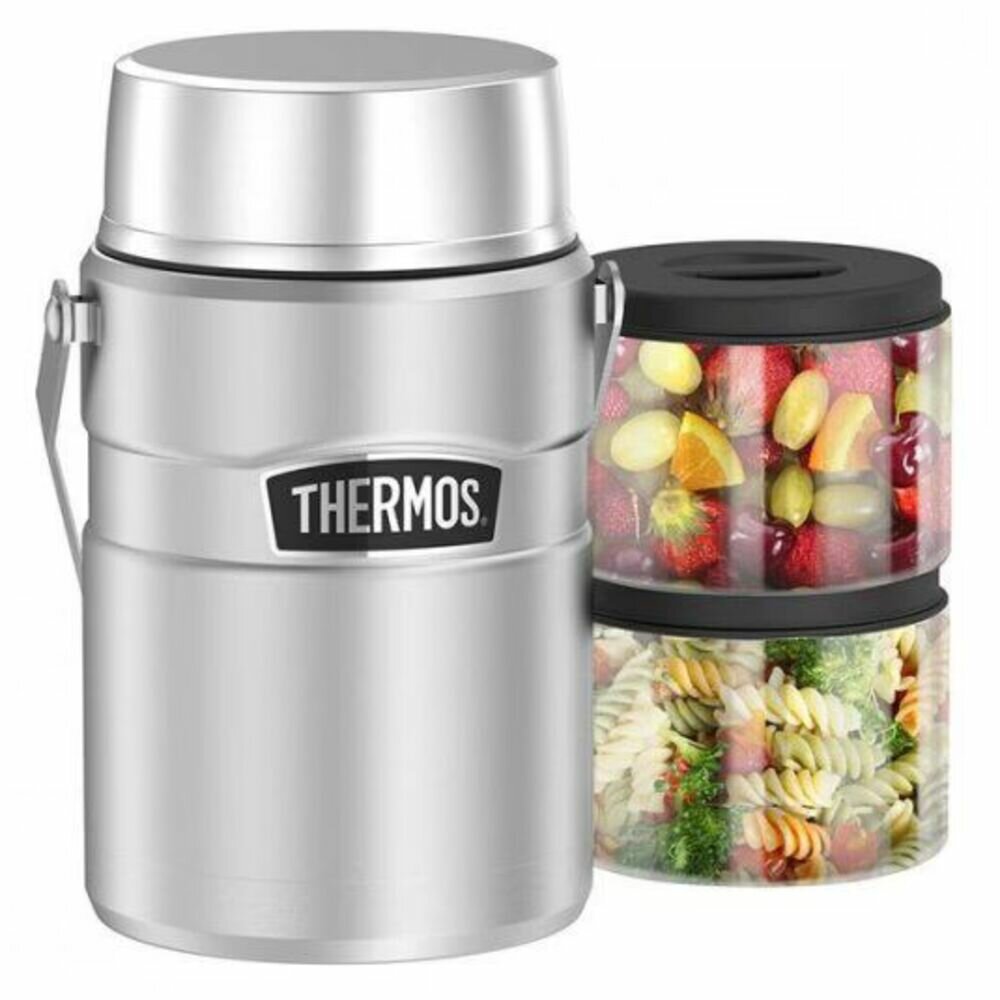 Практичное решение - комплектация термоса двумя контейнерами позволяет разместить внутри разные продукты, сохраняя их свежесть и температуру.