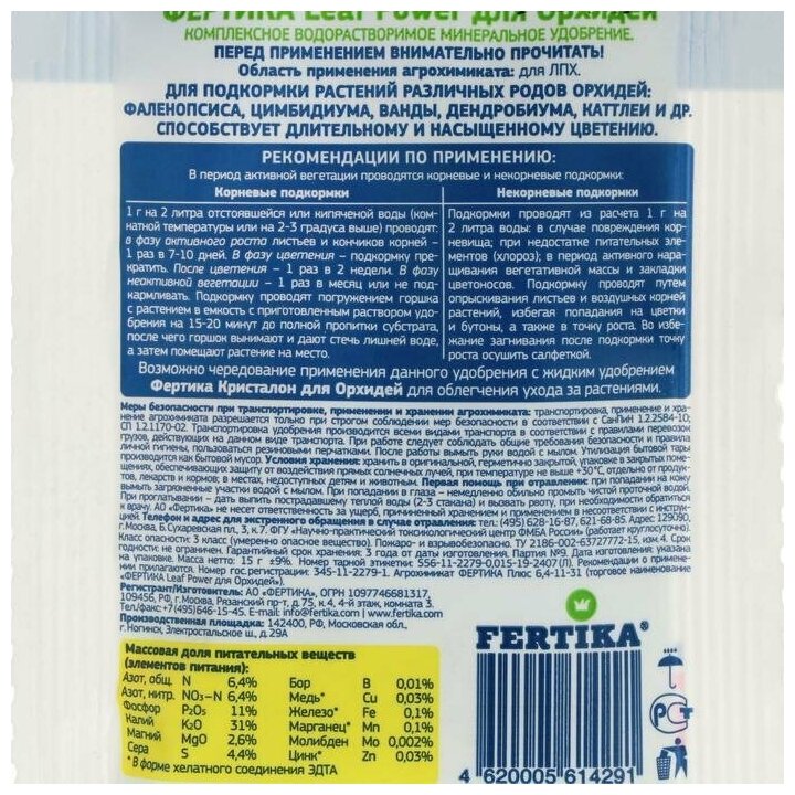 Удобрение минеральное FERTIKA Leaf Power для орхидей 15 гр