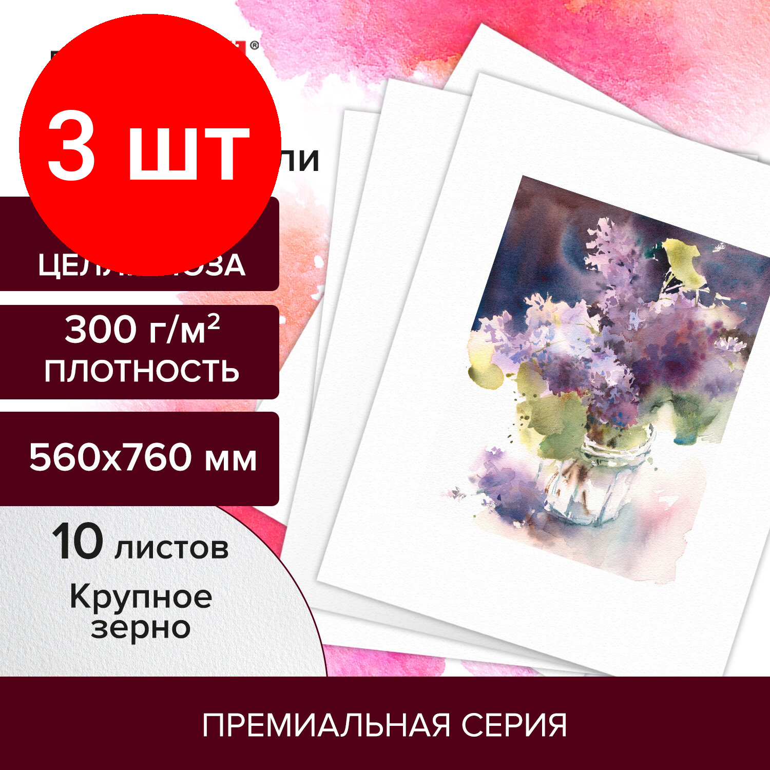 Бумага для акварели Brauberg ART PREMIERE 300 г/м2 460x660 мм крупное зерно 10 листов (113234) Бумага для акварели Art Premiere крупное зерно 66х46 см 10 листов