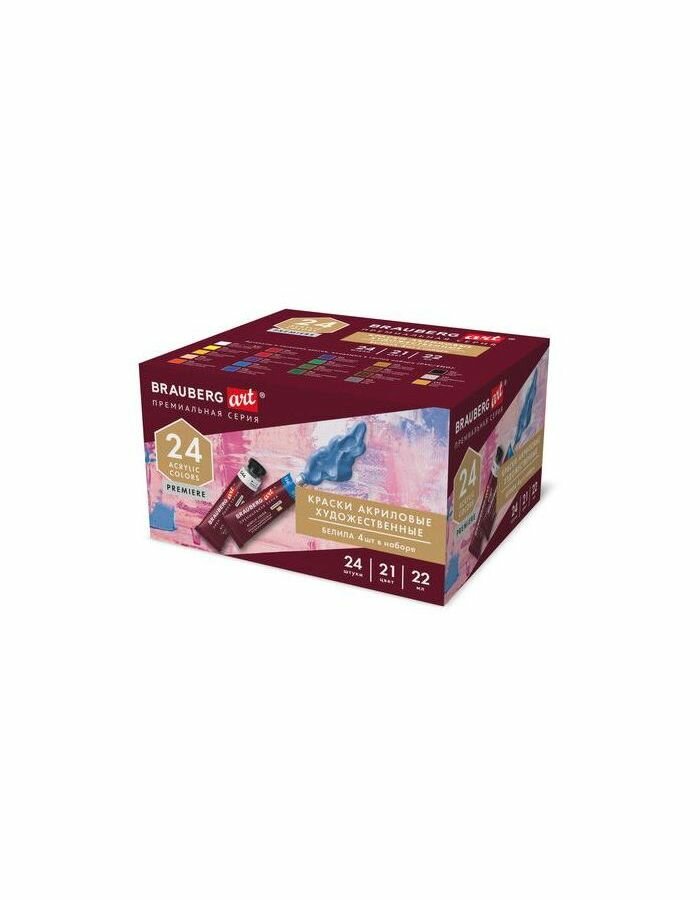 Краски акриловые BRAUBERG Art Premiere глянцевые 11 цв. туба 22мл картонная коробка Краски акриловые художественные Art Premiere 12 шт.