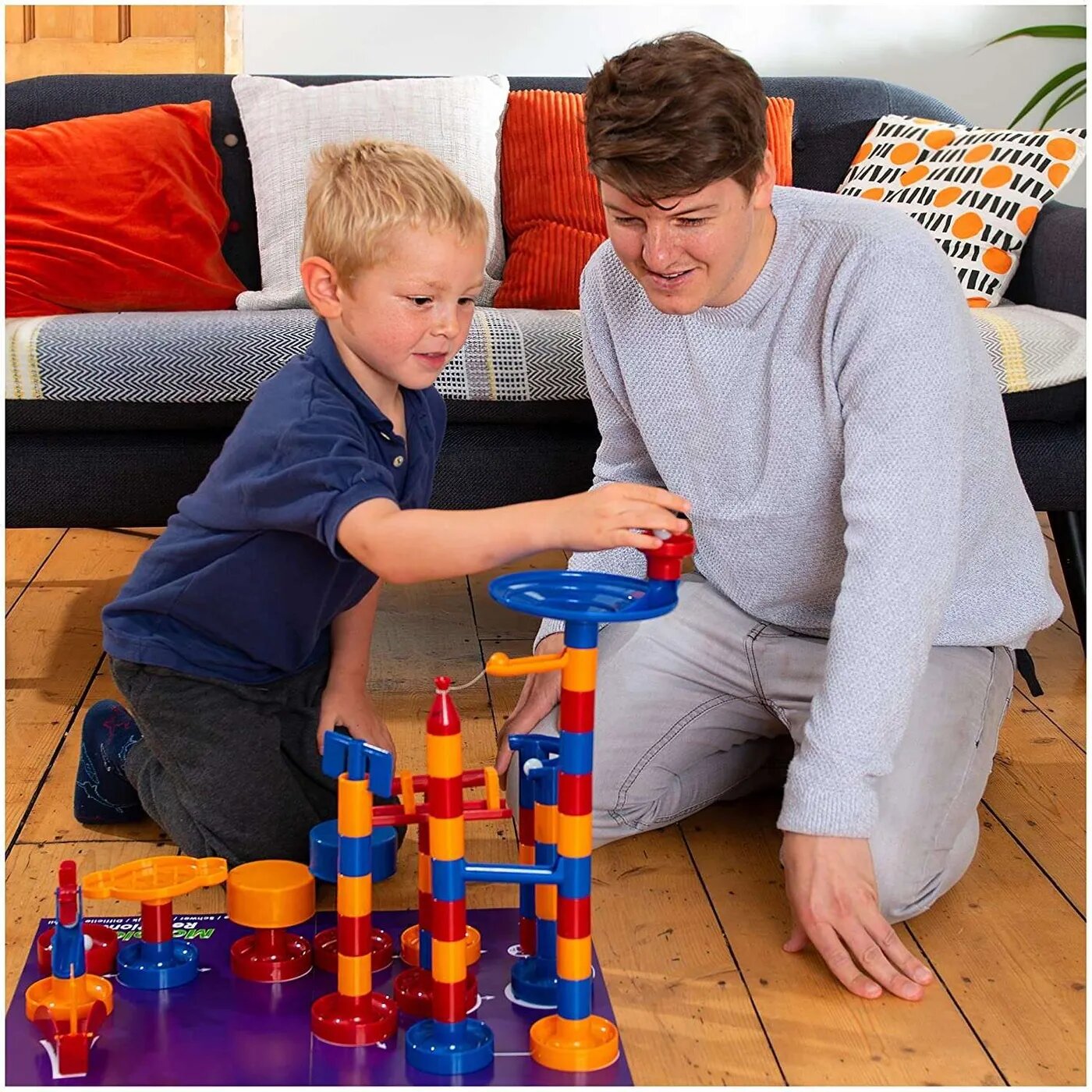 Дети могут создавать небольшие простые лабиринты или более сложные конструкции из разноцветных пластиковых деталей, соединенных вместе. Шарики исчезнут внутри колонн, скатятся по желобам, через колесо и по кольцевой развязке. Создание множества сложных и увлекательных лабиринтов подарит вам много часов удовольствия. Начните с использования прилагаемой инструкции, а затем переходите к созданию своего собственного лабиринта.