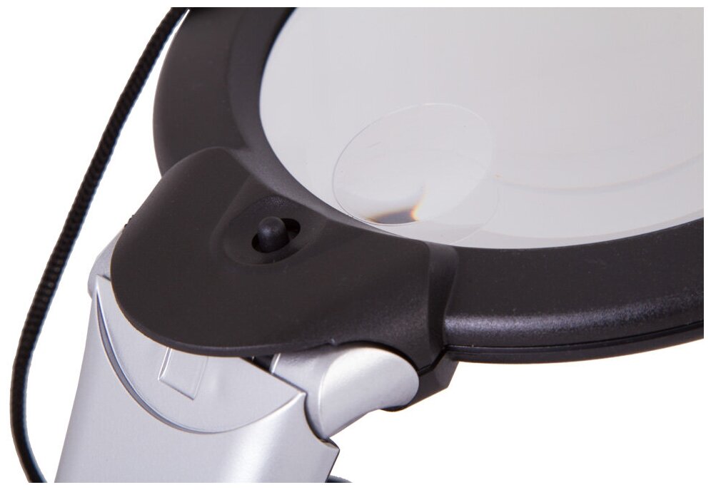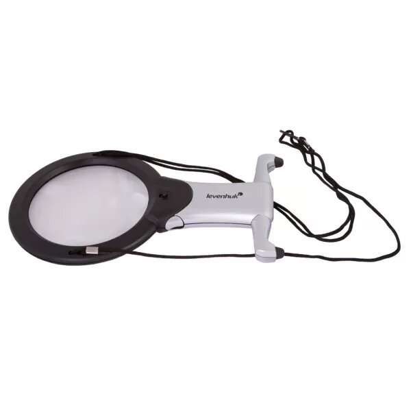 Лупа Levenhuk Zeno Vizor N2 – удобный увеличительный прибор, который позволяет работать сразу с большой областью. Она снабжена шейным ремешком, но может быть установлена и на подставку. Основная линза большого диаметра дает увеличение в 2,5 крат. Этого вполне хватит для работы с текстами, мелкими изображениями, чтения и рукоделия. Дополнительная линза более мощная и имеет кратность 5х. С ее помощью можно изучать отдельные области предметов, фокусироваться на небольших деталях.
