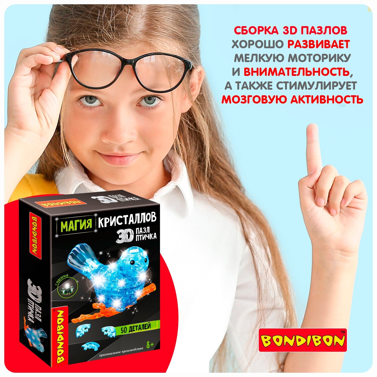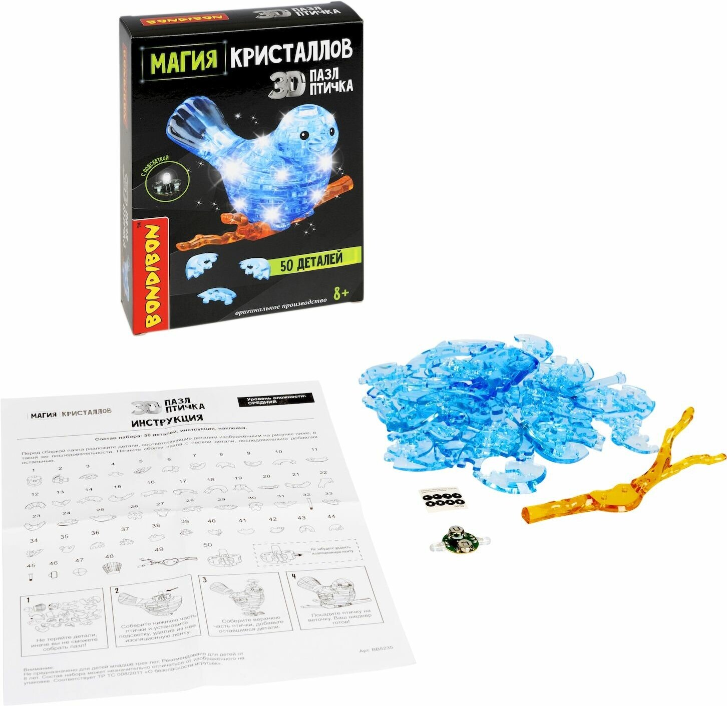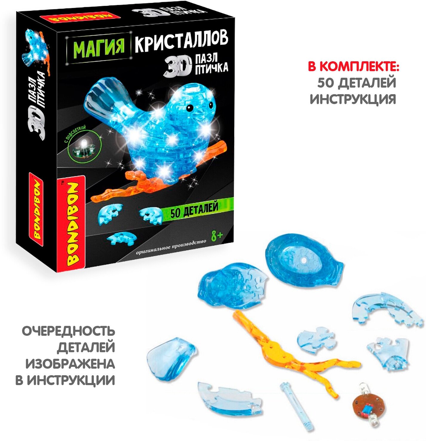 Пазл 3D. Магия кристаллов Птичка с подсветкой 50 деталей Bondibon