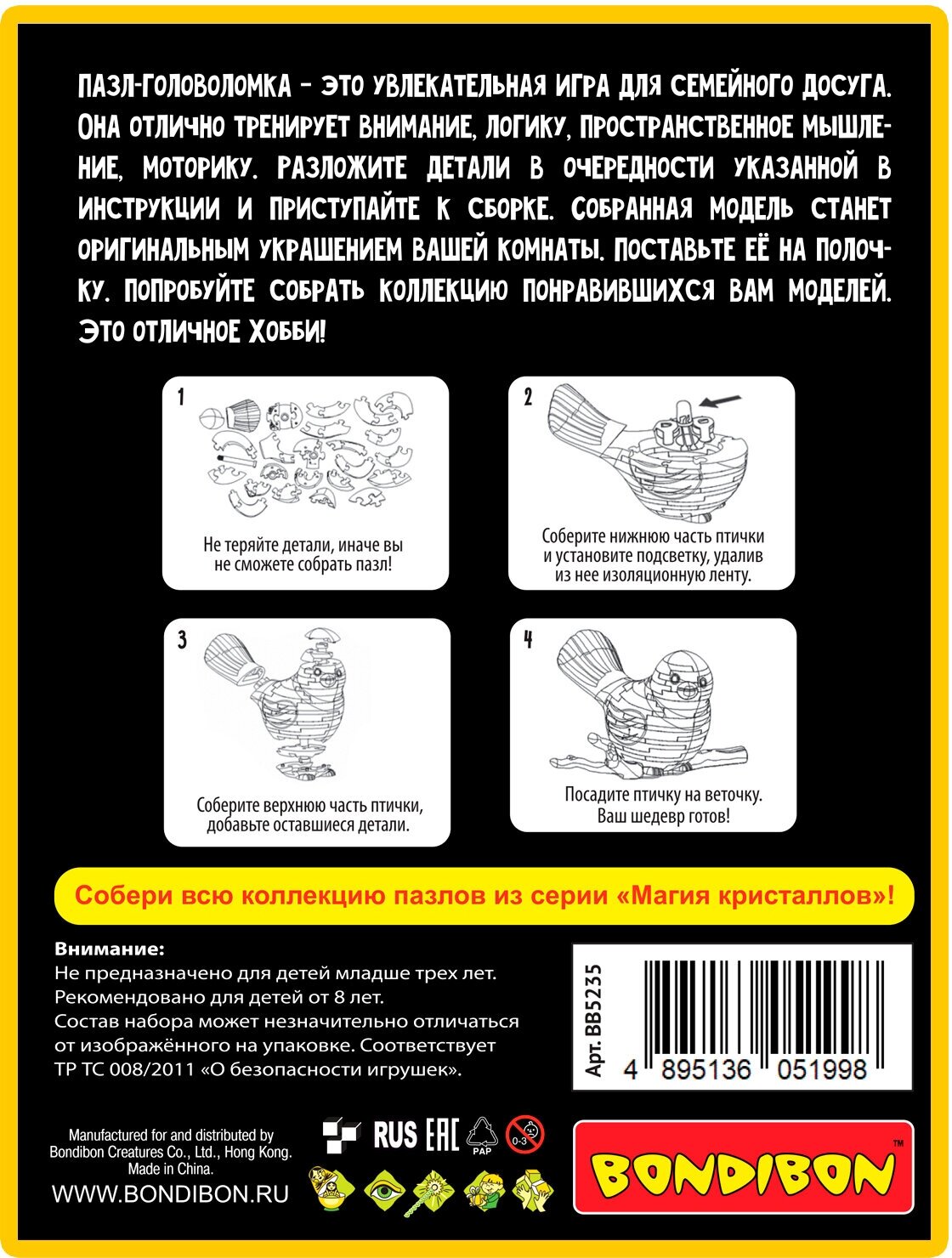 Покупайте интеллектуальную головоломку пазл 3D "Птичка" с подсветкой из серии Магия кристаллов Bondibon, украшайте свою комнату и соберите полную коллекцию понравившихся Вам кристаллов!