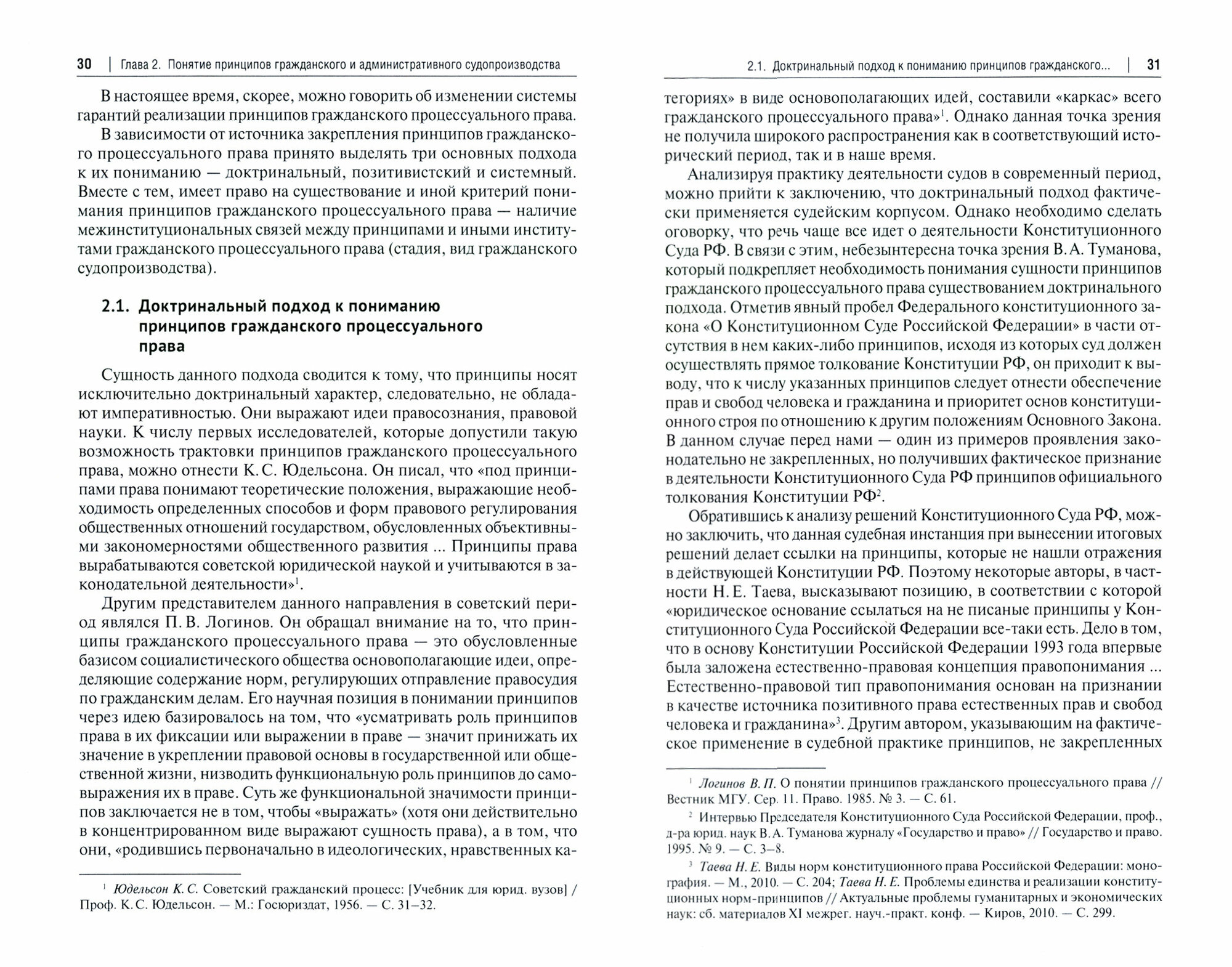 На основании анализа доктрины, судебной практики автор приходит к выводу, что понятие, система принципов в гражданском и административном судопроизводстве имеет одну правовую природу. В связи с этим делается вывод об административном судопроизводстве как элементе отрасли гражданского процессуального права.