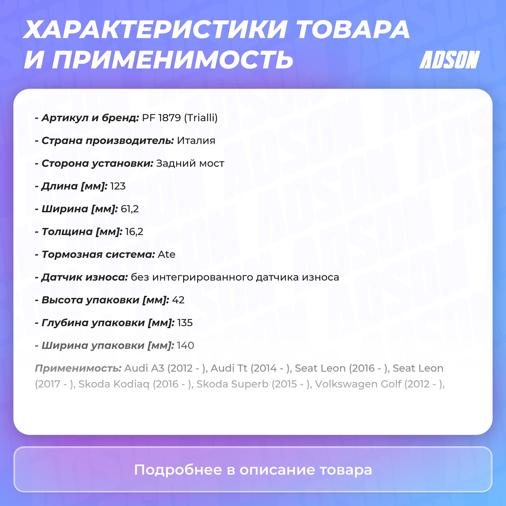 Тормозные колодки TRIALLI дисковые задние PF 1879