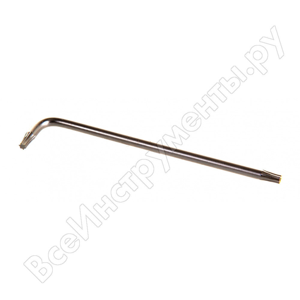 Отвертки угловые - это инструменты, получившие широкое распространение, за счет простой конструкции и удобства применения. Данный тип инструмента приобрел, по сути, не правильные, но всем понятные названия - "шестигранник" или "торцевой ключ", появившиеся благодаря немецкой фирме "Bauer & Schaurte", предложившей миру особые резьбовые крепежные детали - винты с внутренним шестигранным рабочим профилем (INBUS). Согнутый под углом 90град. стержень с рабочими профилями одного размера на обоих концах, сочетает в себе относительное удобство использования с возможностью приложения значительных рабочих нагрузок, когда в качестве ручки используется длинная часть и работу в труднодоступных местах, когда в качестве воротка используется короткая. Комплект угловых шестигранников "H09MT06S" изготовлен из стали S2, имеет матовое хромоникелевое покрытие и применяется со всеми видами крепежа, имеющего внутренний рабочий профиль TORX TAMPER RESISTANT, с центровочным предохранительным штифтом. Содержание: T4TR, T5TR, T6TR, T7TR, T8TR, T9TR; Держатель.