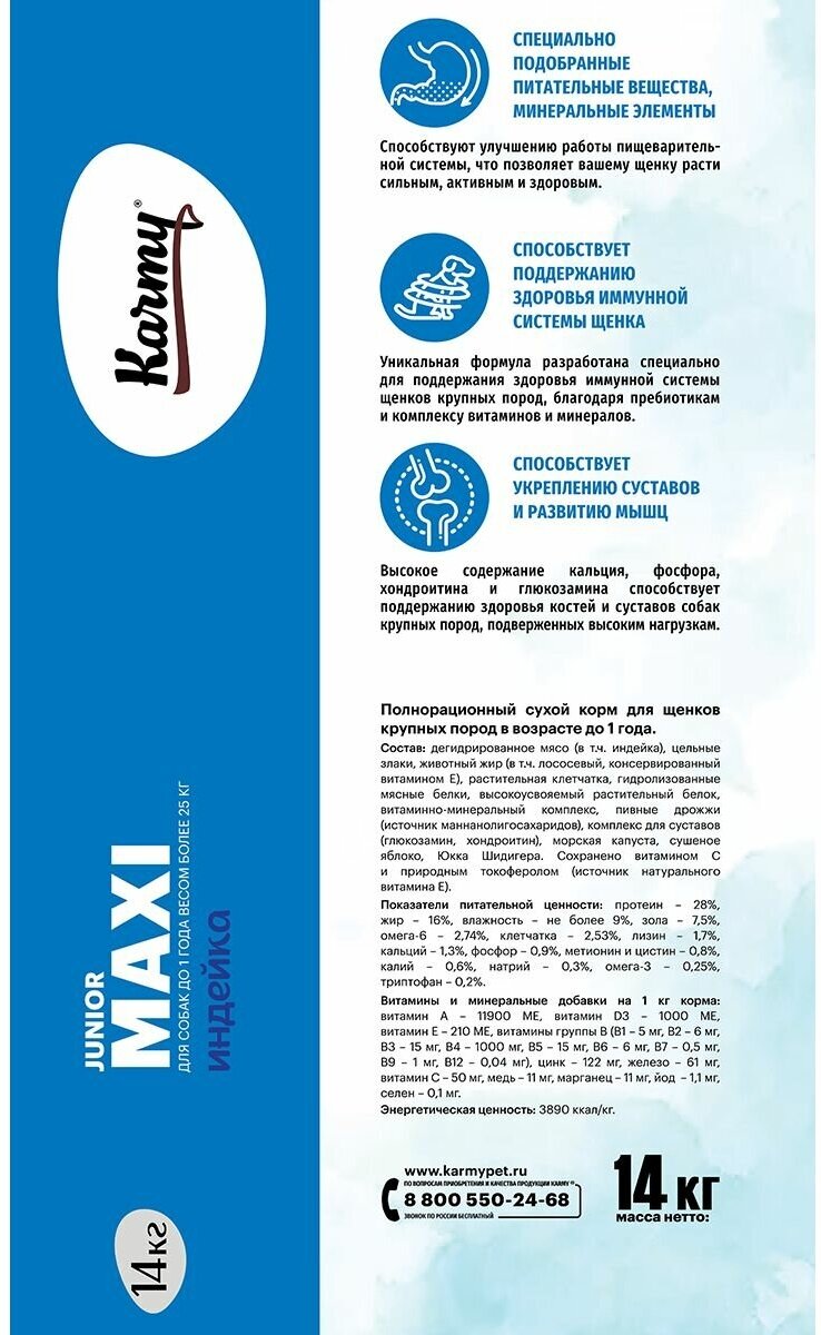 Сухой корм для щенков Karmy с индейкой для крупных пород 14 кг Maxi