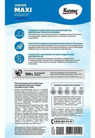 Karmy Junior полнорационный сухой корм с индейкой для щенков крупных пород до 1 года.