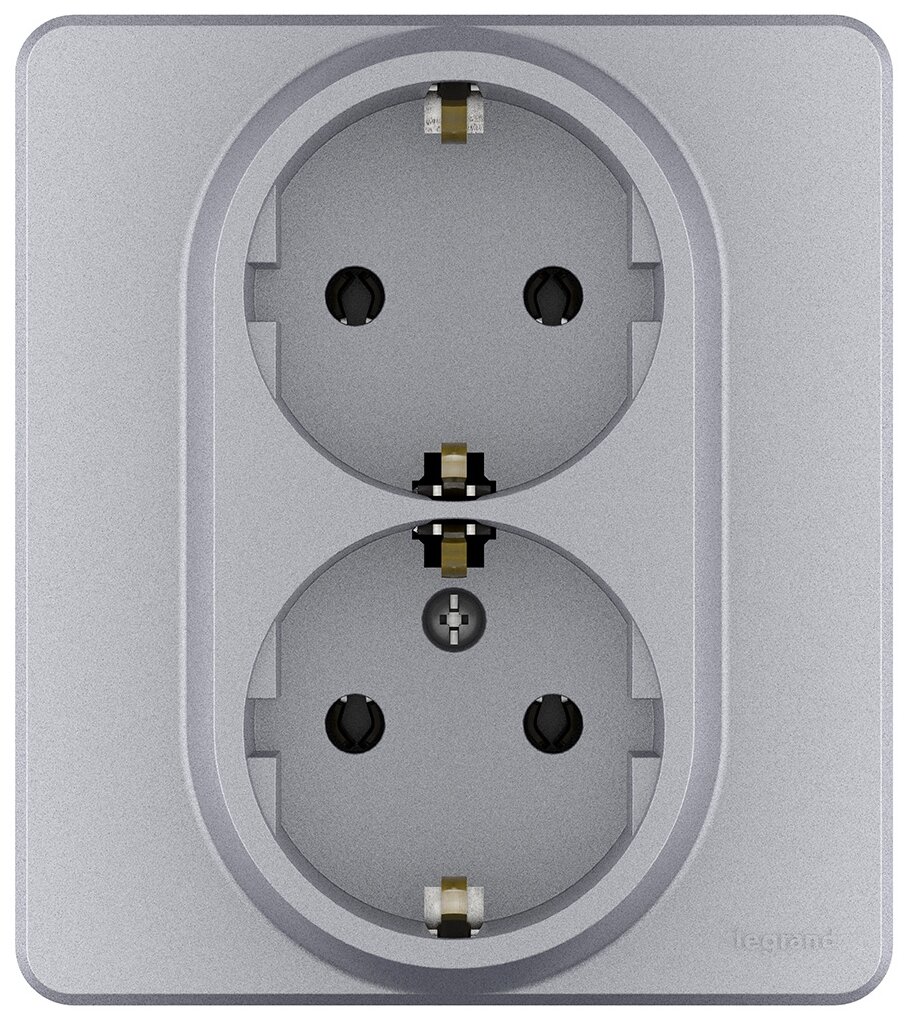 Данная двойная розетка применяется для электропитания в зданиях с проводкой с заземлением (с защитным проводником). Позволяет компактно разместить две розетки в одном установочном месте