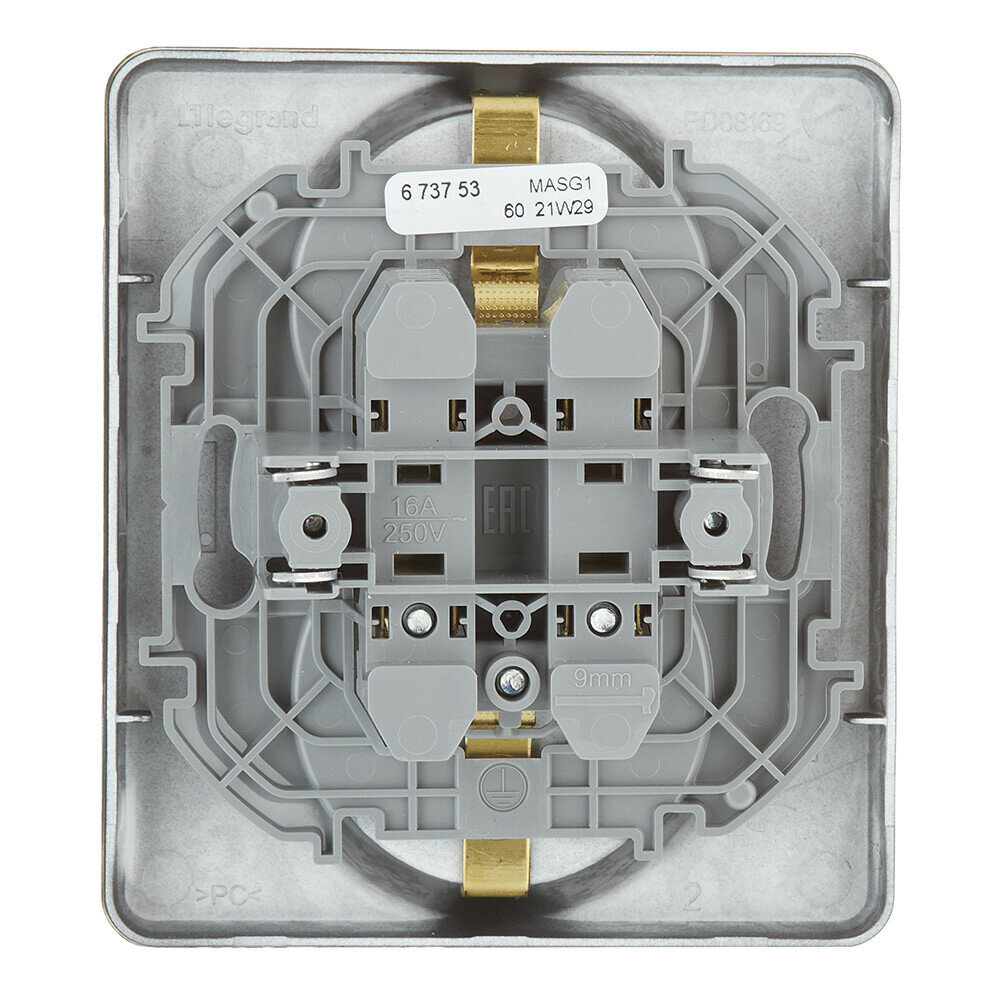 Данная двойная розетка применяется для электропитания в зданиях с проводкой с заземлением (с защитным проводником). Позволяет компактно разместить две розетки в одном установочном месте