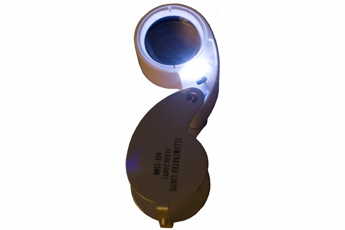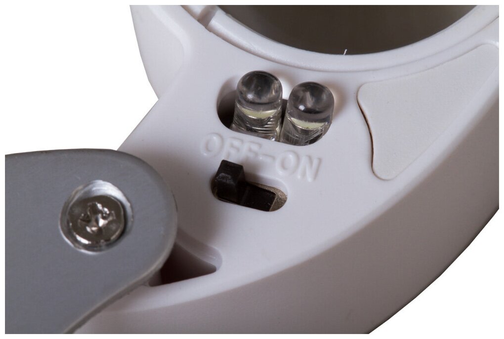 Лупа имеет встроенную подсветку. Для освещения рабочей области используются два ярких светодиода, расположенные рядом с лин