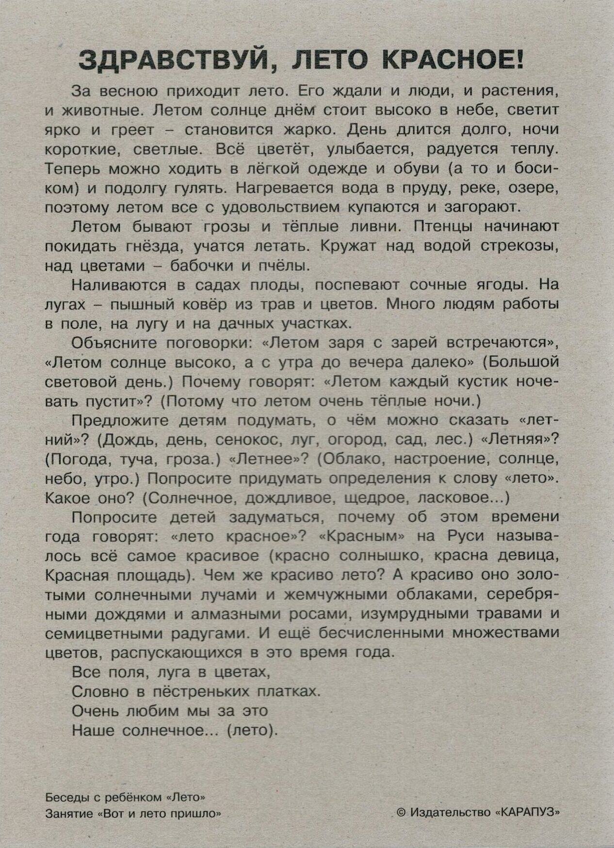 Беседы с ребенком Лето 12 картинок с текстом на обороте А5 (Шипунова В.); Творческий центр Сфера Издательство, 2022