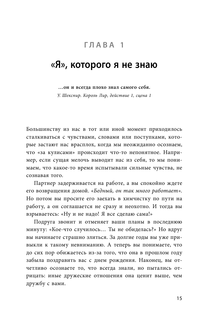 «Чтение этой книги, особенно если вы будете выполнять все упражнения, не будет легким и комфортным. Но я уверен, что при определенном усердии вы поймете все преимущества истинного самосознания. Эта книга поможет получить максимум от любых отношений, построить живую, но контролируемую эмоциональную жизнь, а также лучше понять самого себя, свои сильные и слабые стороны». — Джозеф Бурго, психоаналитик, психолог по вопросам семьи и брака, практикующий уже более 35 лет