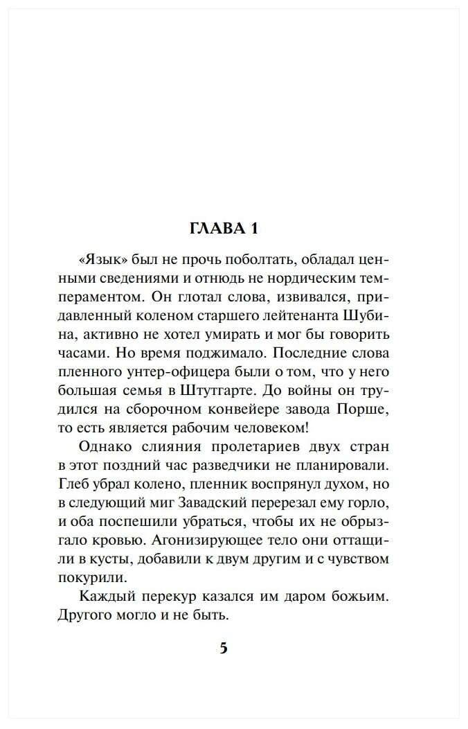 На этот раз старшему лейтенанту Шубину придется вытаскивать из кольца немецкого окружения штаб Второй Ударной армии и все бы ничего, но автор главным лицом произведения решил сделать реального генерала А. Власова. Не знаю почему мне это не совсем понравилось. Может то что автор решил взять на себя смелость и попытаться рассказать о последних днях перед пленом знаменитого командарма? Не хочу гадать, но этот ход мне не зашел. Вот были бы все персонажи вымышленные, думаю и оценка была бы повыше. А так тут еще и концовка открытая. Как поведет себя власть с разведчиком, который все же упустил генерала? Вопрос без ответа, а узнать хотелось бы).