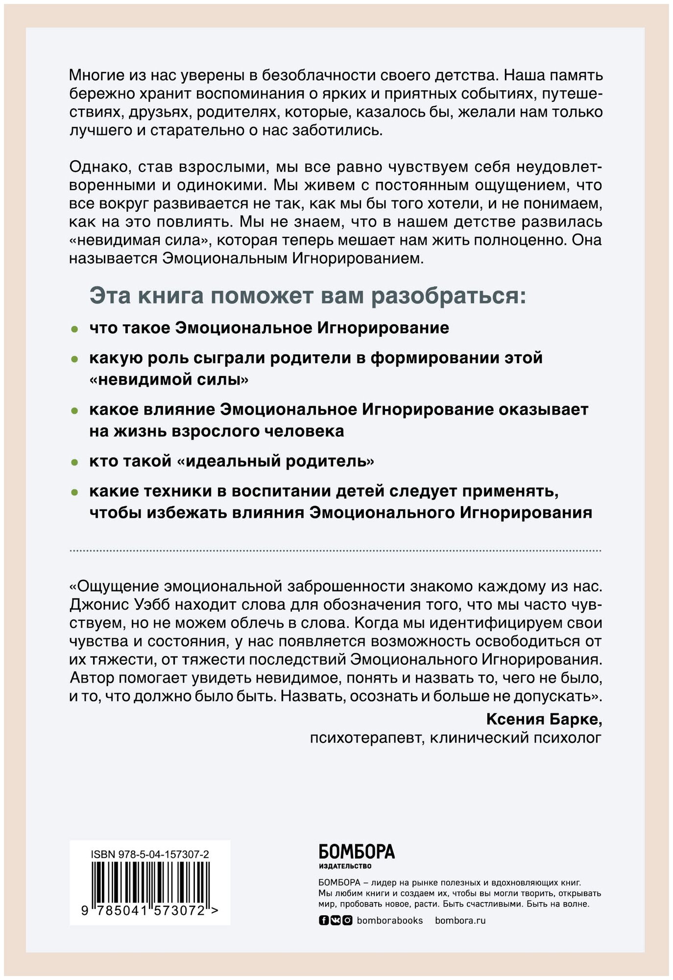 Многие из нас уверены в безоблачности своего детства. Наша память бережно хранит воспоминания о ярких и приятных событиях, путешествиях, друзьях, родителях, которые, казалось бы, желали нам только лучшего и старательно о нас заботились. Однако, став взрослыми, мы все равно чувствуем себя неудовлетворенными и одинокими. Мы живем с постоянным ощущением, что все вокруг развивается не так, как мы бы того хотели, и не понимаем, как на это повлиять. Мы не знаем, что в нашем детстве развилась , которая теперь мешает нам жить полноценно. Она называется Эмоциональным Игнорированием.