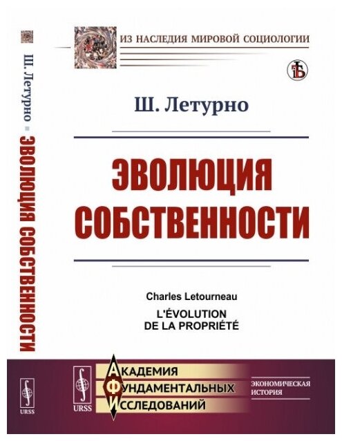 Вниманию читателей предлагается книга известного французского социолога и этнографа Шарля Летурно (1831--1902), посвященная исследованию эволюции собственности. Автор рассматривает собственность у животных и первобытных людей, освещает развитие собственности в Древнем Египте, Китае, Японии, в Древней Греции и Риме, в средневековом обществе, в том числе при феодальном режиме, а также в современной ему Европе второй половины XIX века. Отдельное внимание уделено вопросу о наследстве, прослеживается развитие института наследования начиная с древнейших времен. Книга рекомендуется историкам, этнологам, правоведам, обществоведам, культурологам, всем заинтересованным читателям.