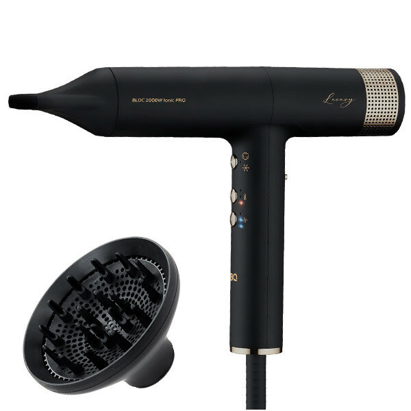 Фен BQ-имеет стильный корпус черного цвета. Мощность в 2000 Вт обеспечивает сильный воздушный поток, скорость которого можно регулировать между. BQ-оснащен насадкой-концентратором и насадкой диффузором, с помощью которых можно сделать любую укладку в домашних условиях.