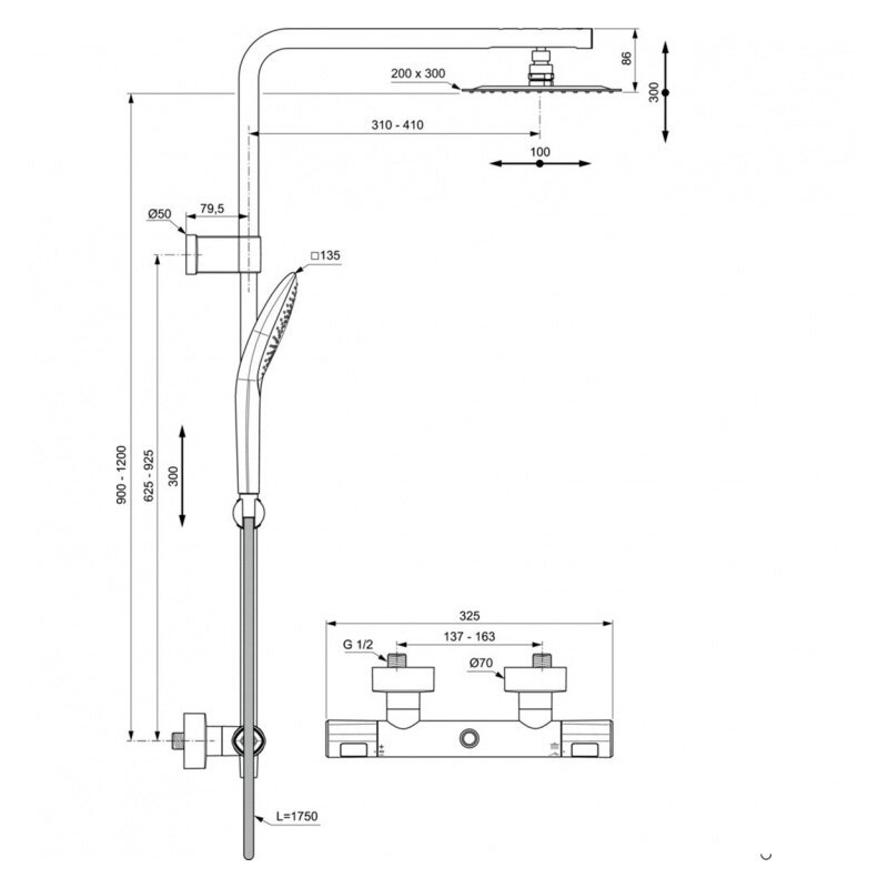 | Габариты верхнего душа | 200 |