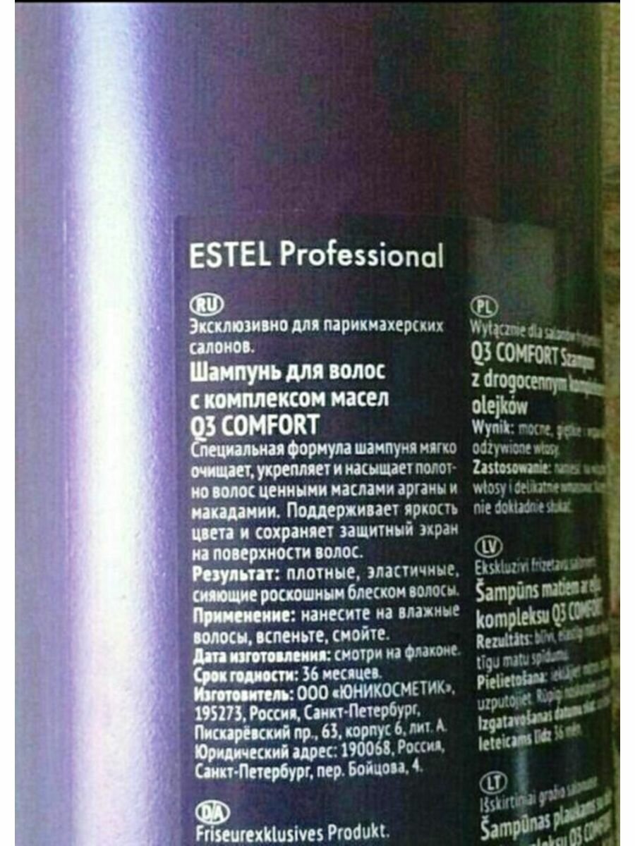 Шампунь эффективно восстанавливает волосы за счёт входящего в состав комплекса масел. Наполняет локоны изысканным ароматом Q3, превращая экранирование Estel в истинное наслаждение.