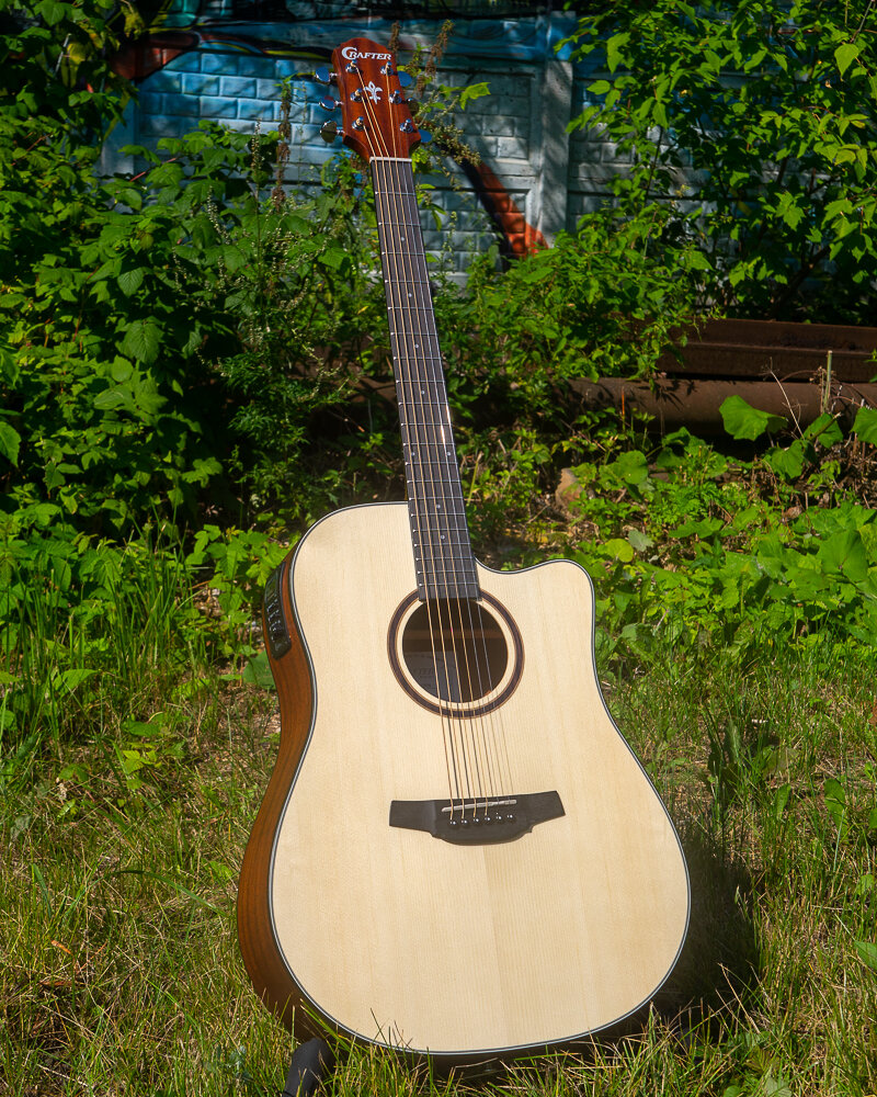 CRAFTER - электроакустическая гитара с вырезом, которая подойдет начинающим музыкантам и обучающимся игре на инструменте. Форма корпуса «дредноут» – это, пожалуй, самая популярная форма акустических гитар. Разработанный компанией Martin в 20-х годах прошлого столетия, «дредноут» до сих пор считается стандартом для вестерн-гитар, который с успехом используется большинством производителей и огромным числом музыкантов, играющих в самых различных стилях. Эти корпуса имеют несколько больший размер, чем классические или оркестровые гитары, а звучание имеет явный акцент на низкие частоты.